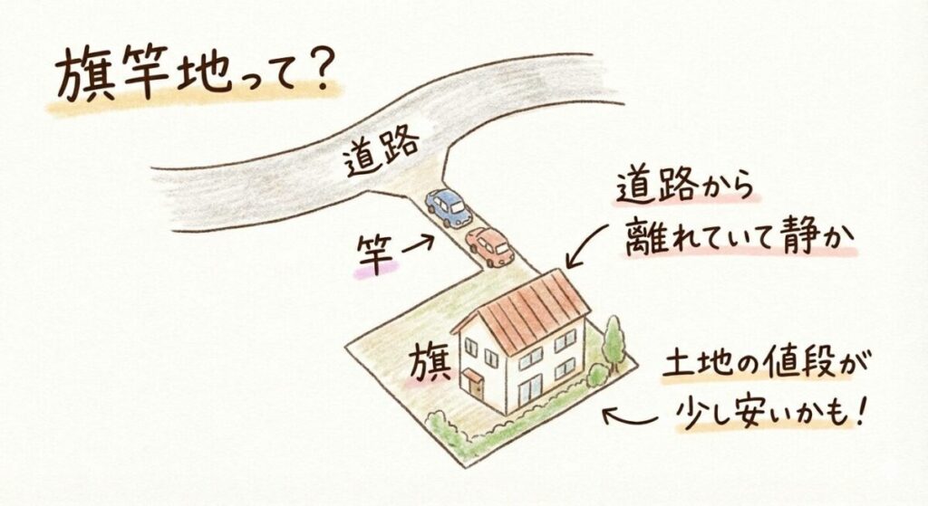 そして何より、土地の形はいわゆる「旗竿地」です。竿の部分に2台分の駐車場はあるものの、縦列駐車となります。