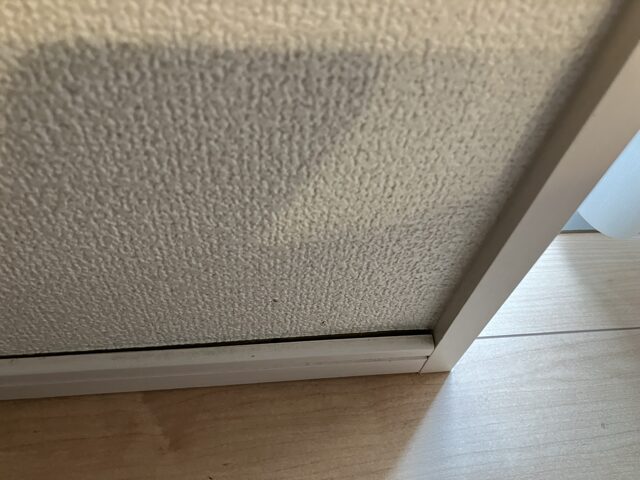 剥がれさえ直せば多少目立たなくなった気はしますが、亀裂が気になる場合は部分的にでも張り替えるしかないと思います。個人的には家族しか利用しない寝室ということもあって特に気にしていません。右の写真は子ども部屋です。子ども本人が亀裂の発生自体に気づいていない様子、子どもは大人よりもおおらかです。